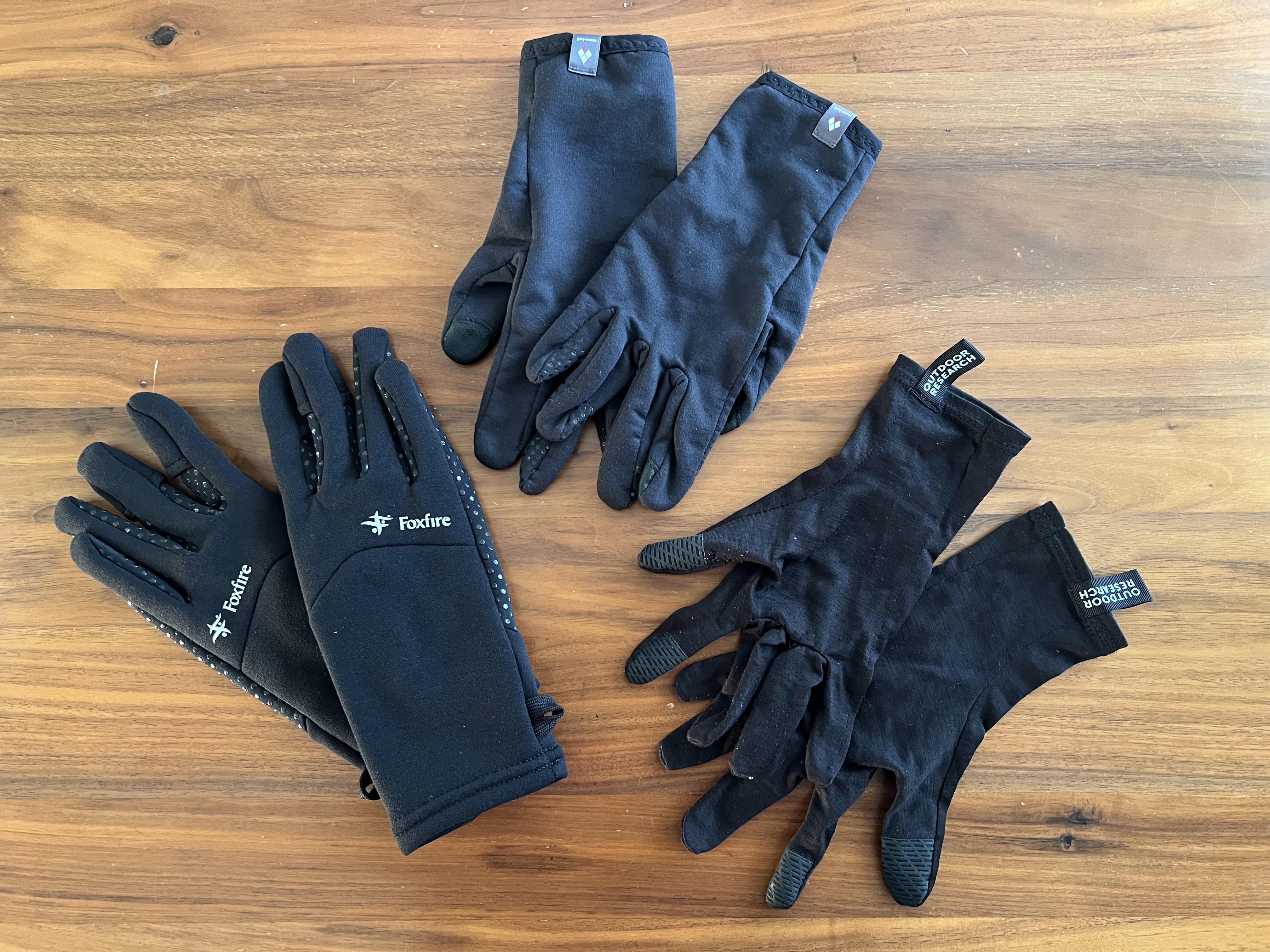 薄手のインナーグローブは、3シーズンでも使用しているアウトドアリサーチ「メリノ150 センサーライナー」。