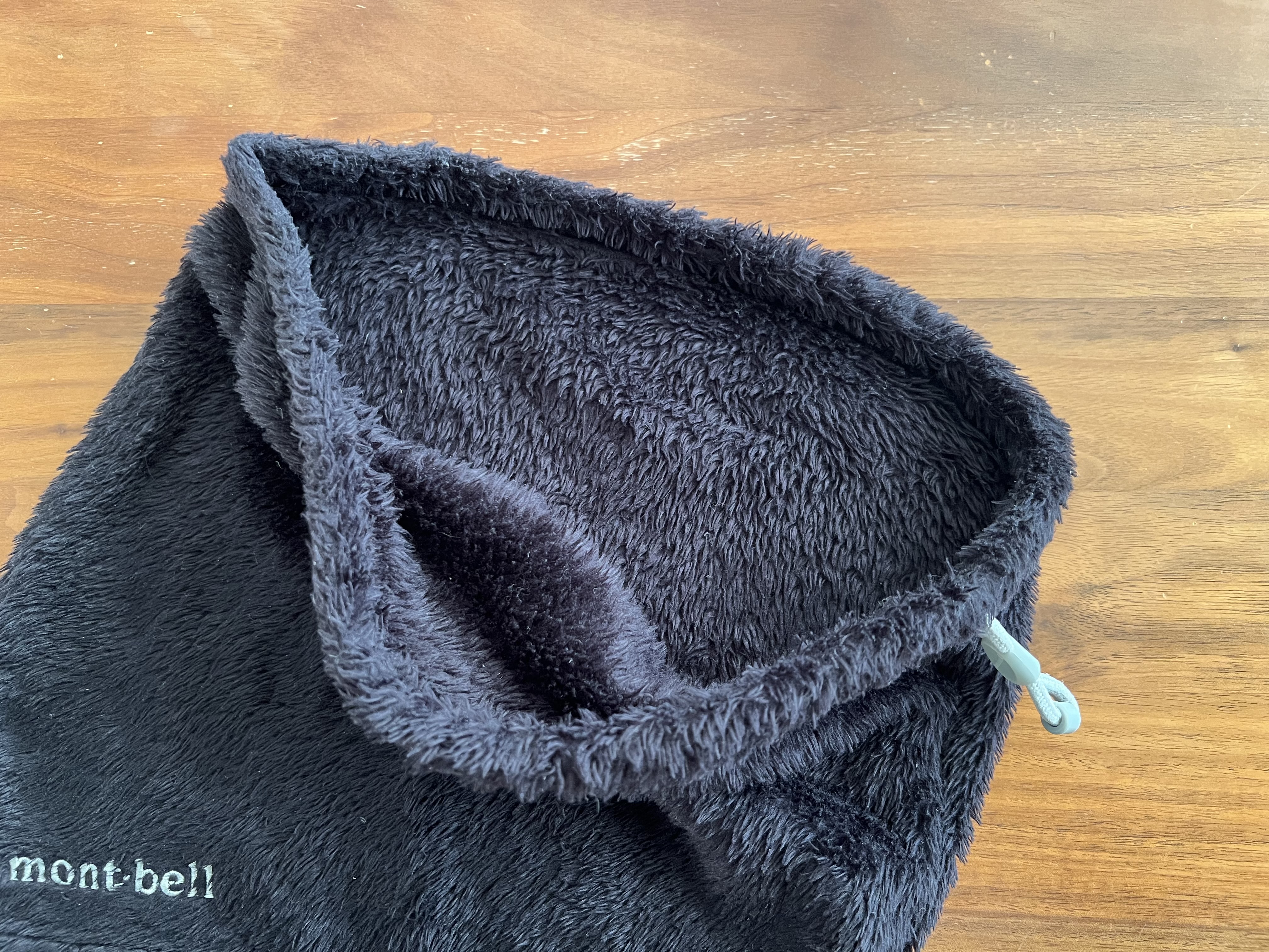 毛足が長くて温かいですが、雪山では雪が付着しやすいので毛足が短いタイプか、トレールアクションシリーズのように表面がツルッとしたものがおすすめです(ネックゲーターあります)。