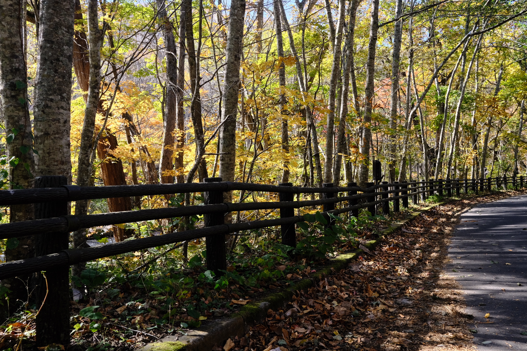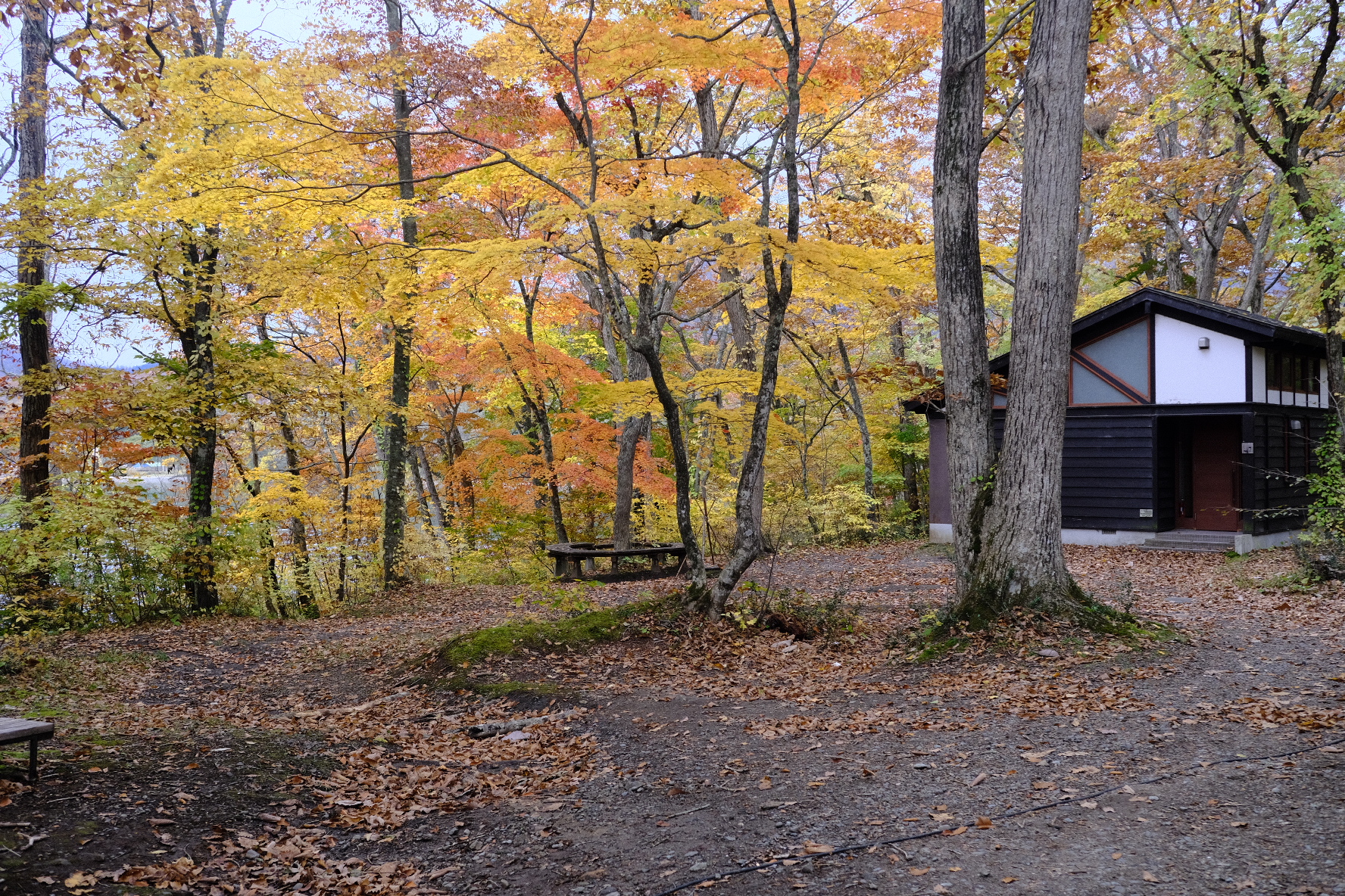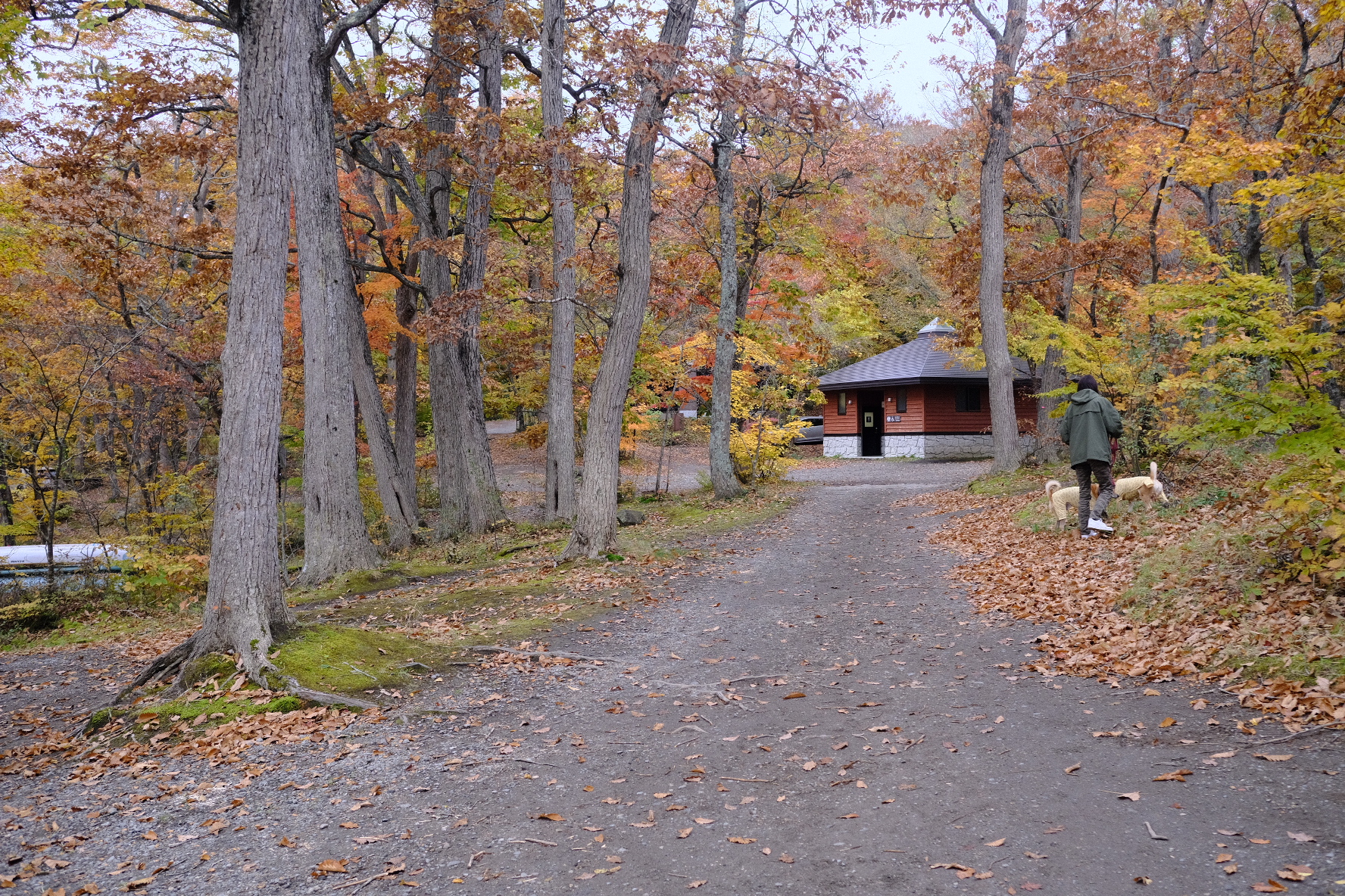 バスまでの時間キャンプ場の紅葉を散策していると、ヨーロッパ系の観光客に「ハイキングをしたの?」と話しかけられました。