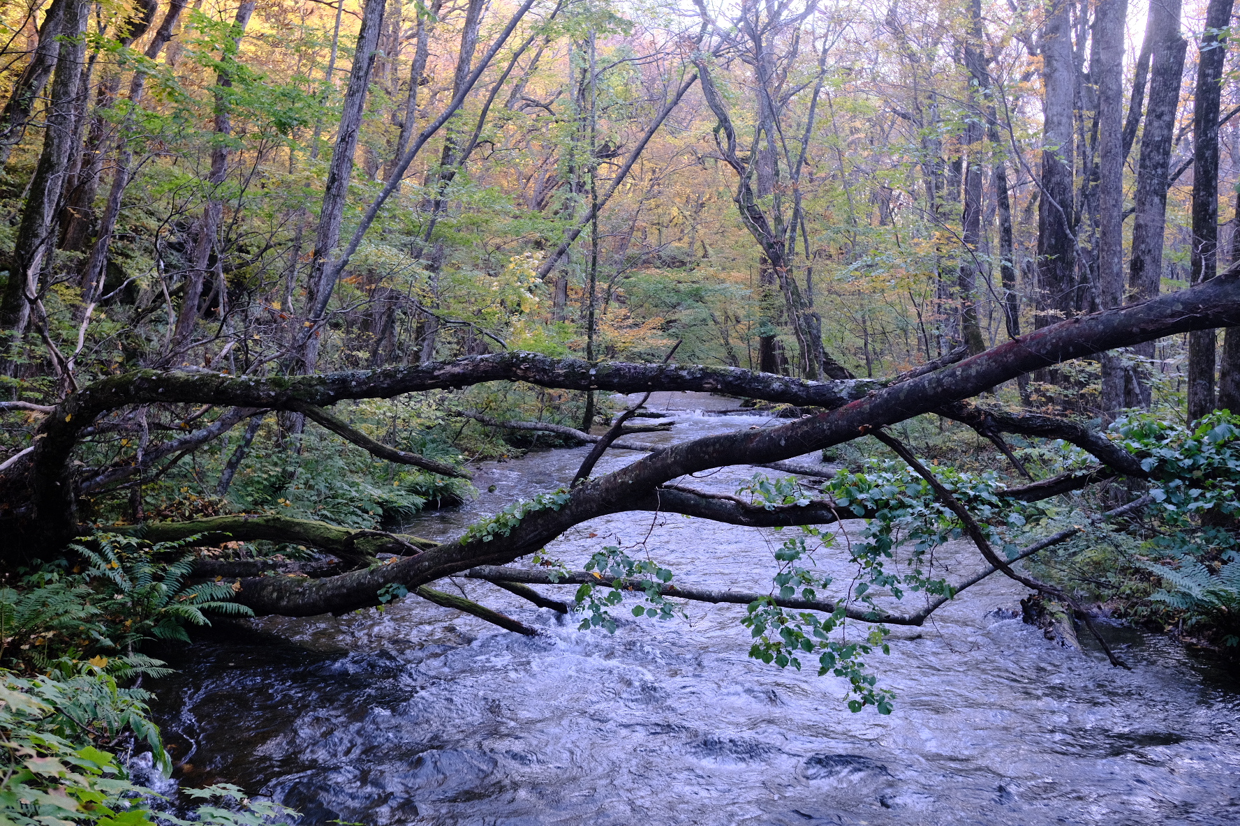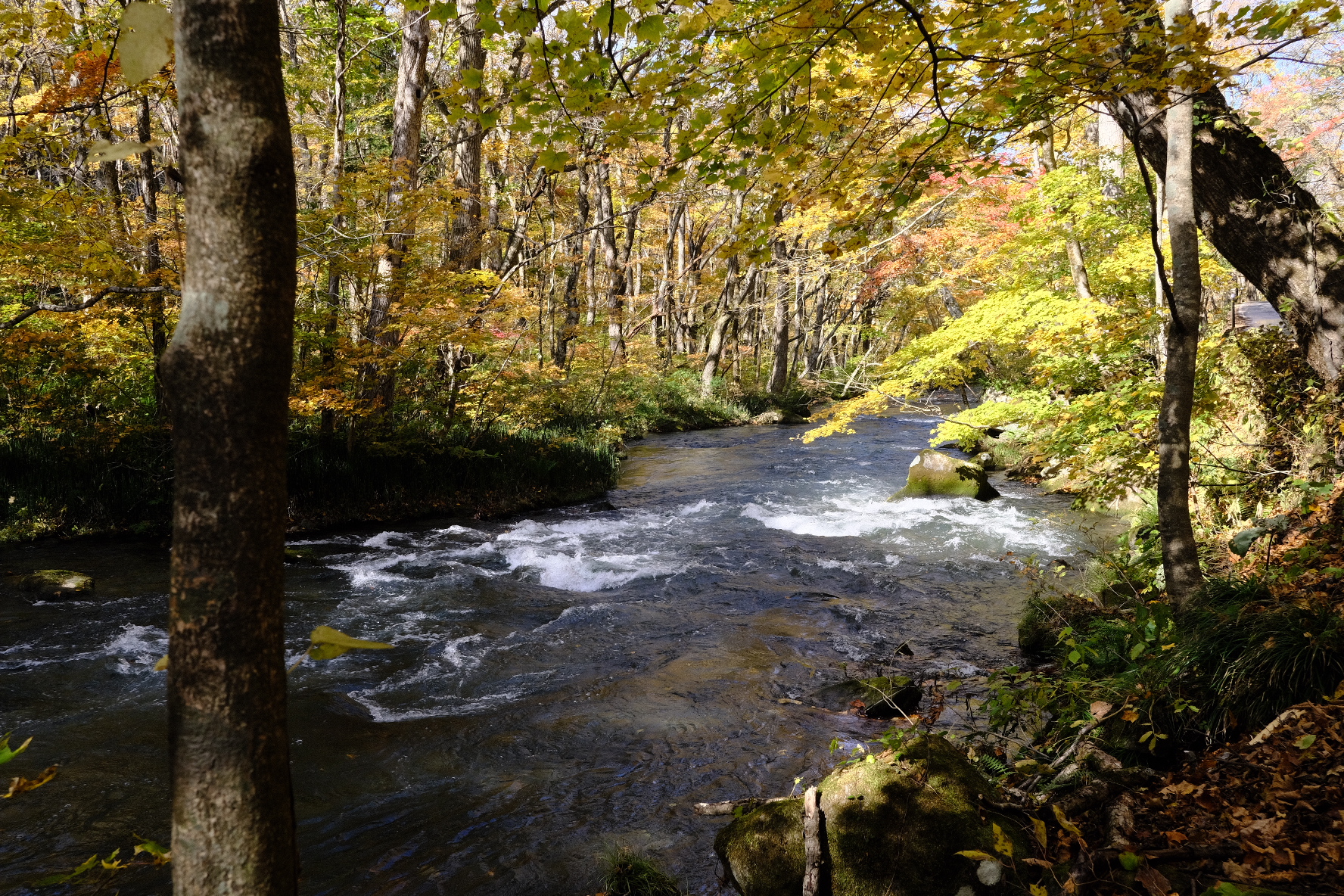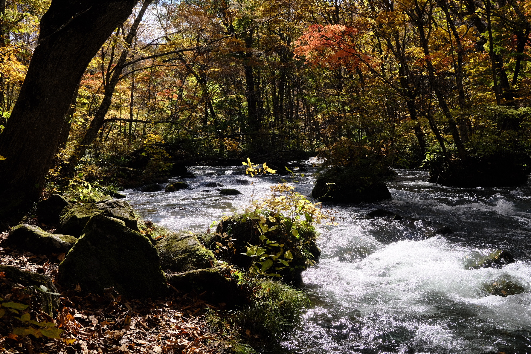奥入瀬(おいらせ)渓流は、十和田湖から流れ出る唯一の川。十和田湖の「子ノ口」から、奥入瀬渓流館がある「焼山」まで約14km続いています。