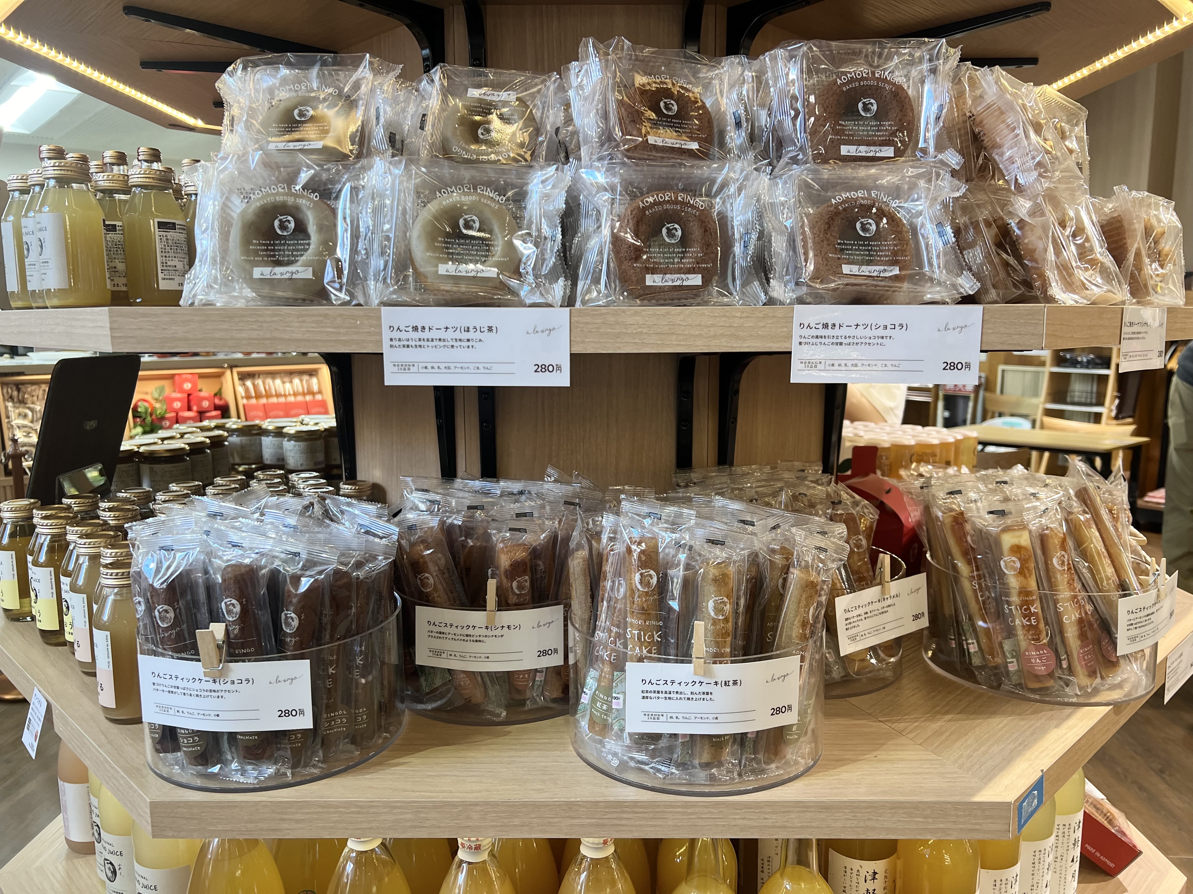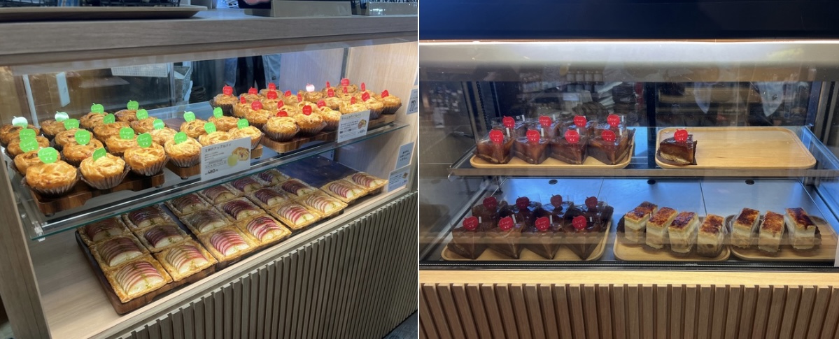 カフェも併設されており、青森の名産であるリンゴのケーキやパイがズラリ。