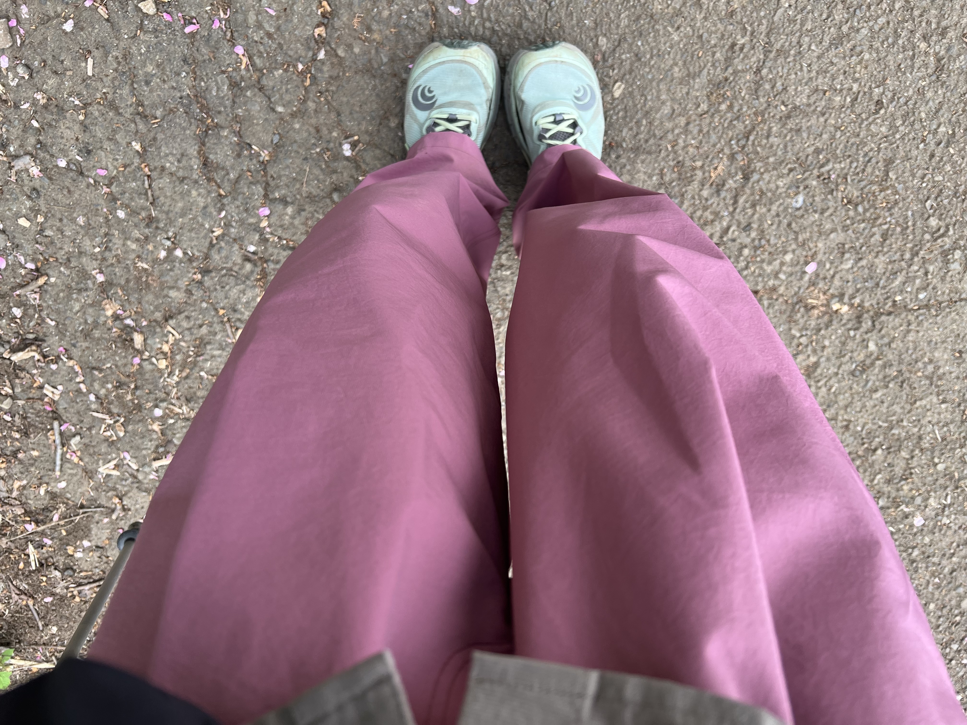 機能的でありながらアウトドア全開のデザインではないので、街着でも違和感なし。足上げがしやすく、自転車も乗りやすいので近所の買い物や保育園の送迎など、服が適当になりがちな場面にも良さそうです。