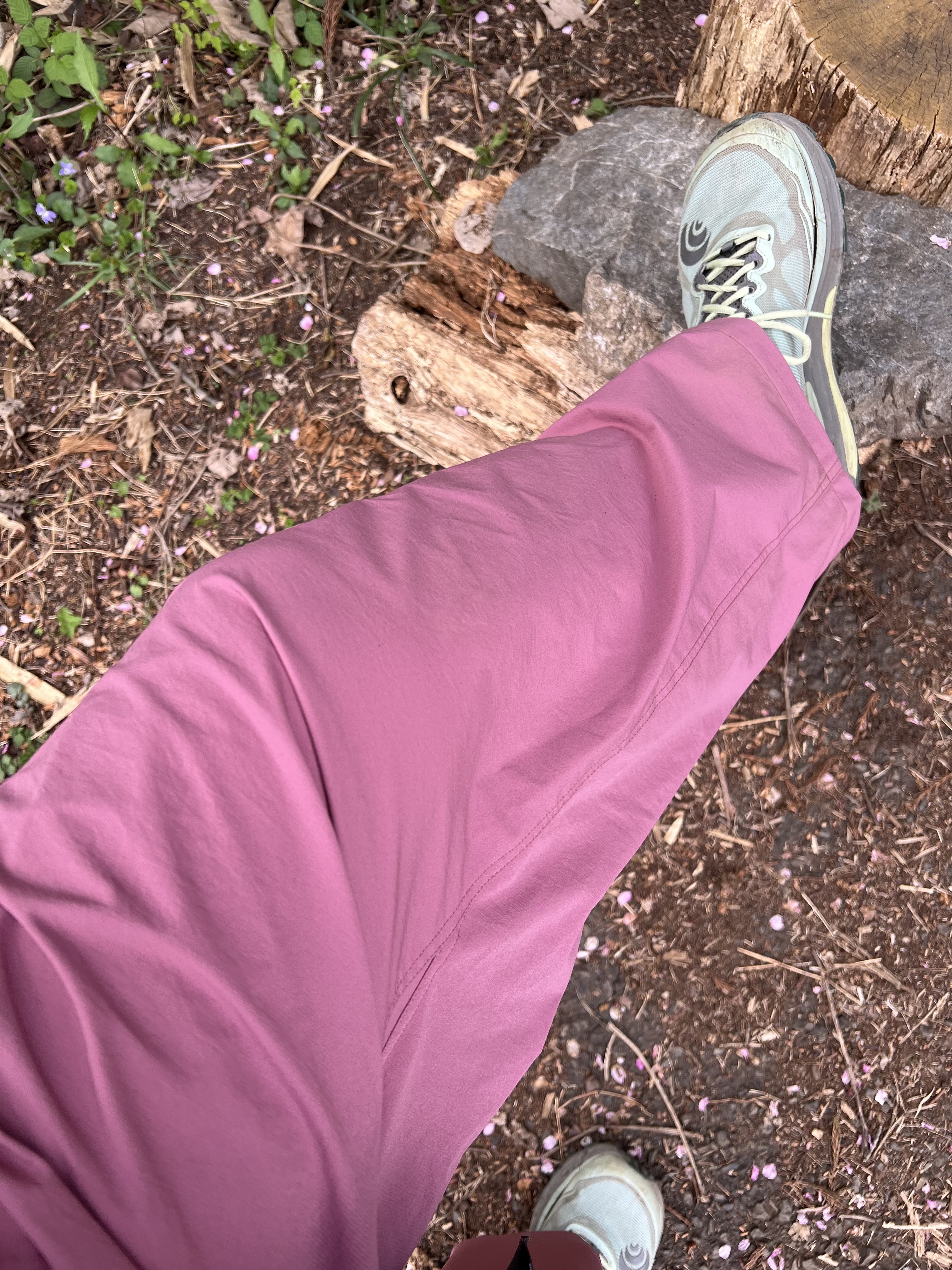 出産後、体重が戻っても腰回りに蓄えた脂肪がまだ居座っており、鍛えないと元には戻らなそう(戻るのか?)。普段着をワイドパンツにしたらラクすぎて、山でも穿きたいなと。