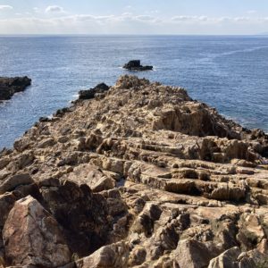 海岸を全部歩くと2kmくらいあります。それはしんどいなと思い、途中で国道へあがりました。